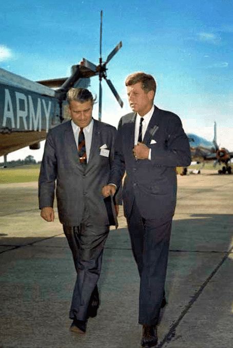 Development director Von Braun showed President Kennedy around the Army Ballistic Missile Agency in 1963.